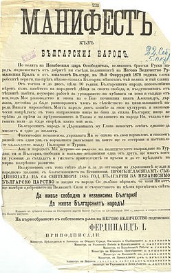 Манифестът за провъзгласяване на Независимостта на България е изложен в президентството