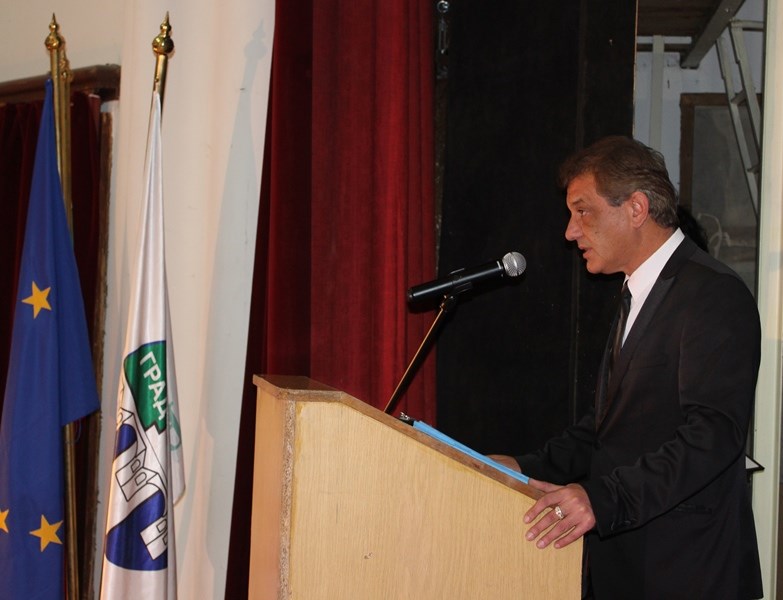 Веднага след това временно изпълняващия длъжността кмет Атанас Ангелов предаде символите на общината на преизбрания за кмет Димитър Славов.