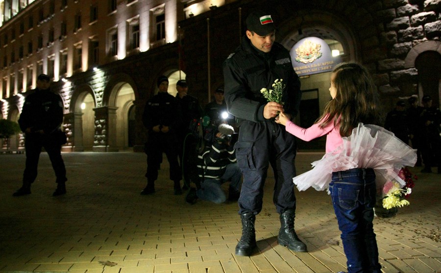 Митингът минава мирно, без напрежение под полицейско присъствие с викове Валери! Позор, оставка и затвор! Шествието на майките тази вечер беше до Софийския университет „Св. Кл. Охридски“