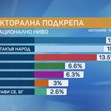 Според проучването електоралната подкрепа за ГЕРБ и формацията на Слави Трифонов "Има такъв народ" на национално ниво е изравнена - 15 процента доверие.