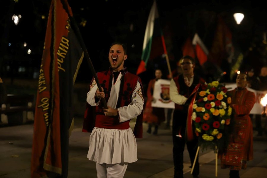 Участниците скандират: “И преди, и сега Македония е българска”, “И преди и сега Босилеград в България”, “И преди и сега Цариброд в България”, “Долу Ньой”, “На бой, на бой за народа свои”, “За България - свобода и смърт”, както и “Мизия, Тракия, Македония”.
