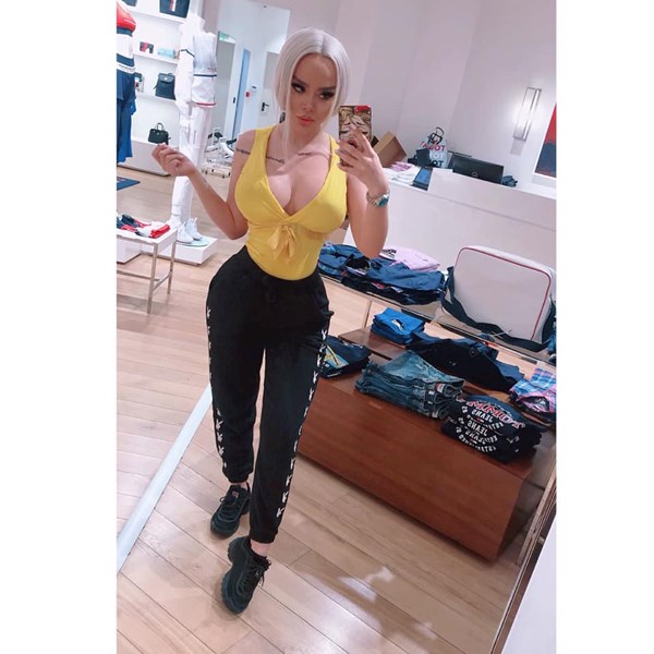 Припомняме, че блондинката се хвали с тънката си талия, с която е природно надарена, както и с пищния си бюст, а съвсем скоро напълни задните си части със силиконови импланти.