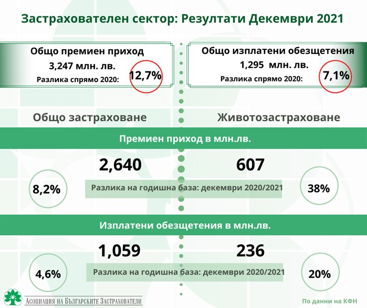 Ковид-пандемията пък е повишила търсенето на здравни застраховки през 2021 г. По линия на животозастраховката „Заболяване“ ръстът на премийния приход е14%. Заедно с това се наблюдава и изпреварващо нарастване на обезщетенията спрямо събраните приходи от здравни застраховки - изплатените обезщетения при риск "Заболяване" са се увеличили с 25% през миналата година.