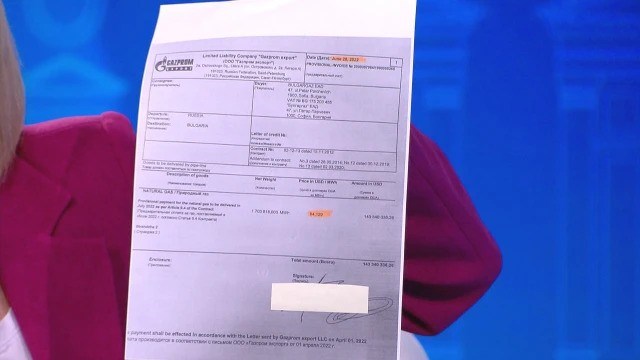 Мая Манолова от "Изправи се, България" показа за първи път в ефира на bTV фактура от „Газпром“ за газа, който би следвало да купим и платим през месец юли.