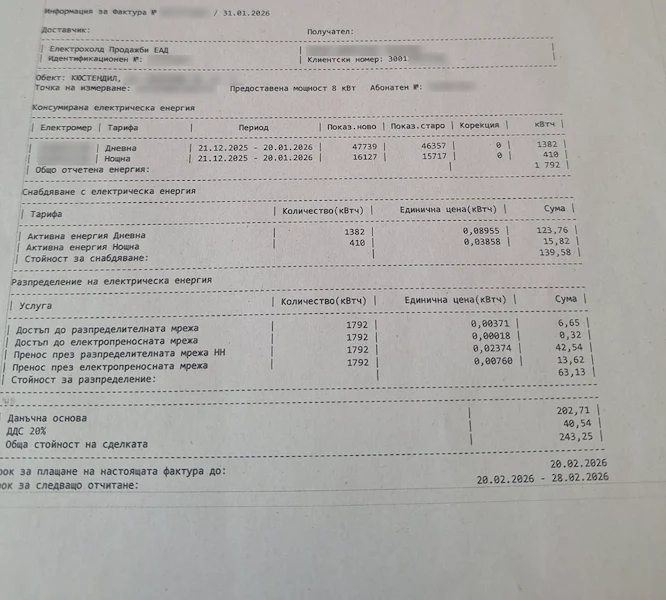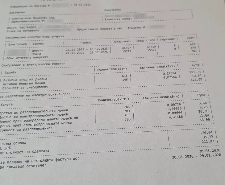 По-тревожният детайл във фактурата е драстичният скок в отчетеното потребление, което според електроразпределителното дружество се е увеличило повече от два пъти.