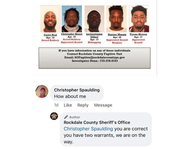 Мъж от Джорджия, САЩ помогна на органите на реда да го арестуват, след като коментира на страницата на полицейското управление на окръг Рокдейл във Facebook.