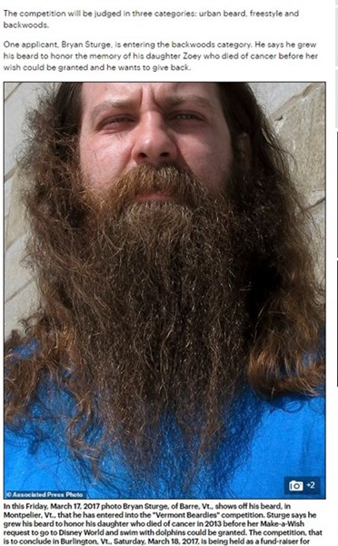 Брайън Стърдж спечели първото място в конкурса за най-хубава брада, организиран с благотворителна цел в Бърлингтън, щата Върмонт, съобщи Асошиейтед прес, цитиран от БТА.