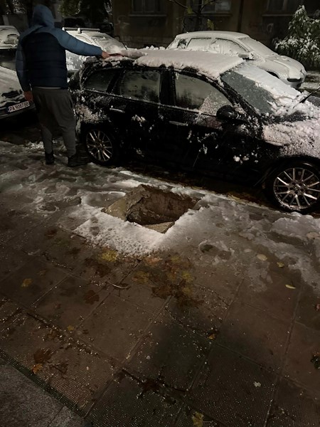 "Тази вечер един приятел пропадна. Живея на улица "Проф. Асен Златаров" 32, точно до Силвена Фото. Лятото, когато правиха ВиК ремонтите отвориха дупката. Стоя така поне 2 месеца, докато я заринат с пясък. Преди около 3 седмици сложиха плочки, но не ги фугираха. При първия сериозен валеж ( в случая снеговалеж ), дупката се отвори, докато човек почистваше колата си от снега. За щастие не пострада. Моля вземете мерки своевременно. Дупката е широка и дълбока", разказа Цветан Ангелов в социалната мрежа.