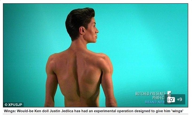 Мъжът, претърпял 190 пластични операции, за да заприлича на мъжкото Барби Кен, ляга отново под скалпела, за да си имплантира крила, пише в. "Дейли мейл".