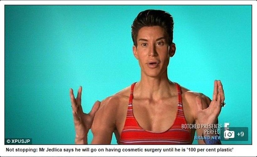 34-годишният Йедлица беше заснет преди, по време и след операцията за американския риалити формат "Botched". Той се хвали, че е преправял почти всяка част от своята анатомия, като крайната му цел била да се превърне в "100-процентова пластика" и да стане съвършен от негова гледна точка.