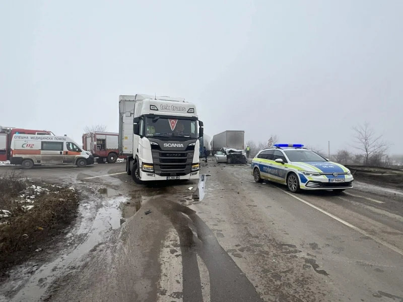 Останалите участници в инцидента – водачите на камионите и пътуващите в софийския "Мерцедес", са се разминали с минимални травми и материални щети.