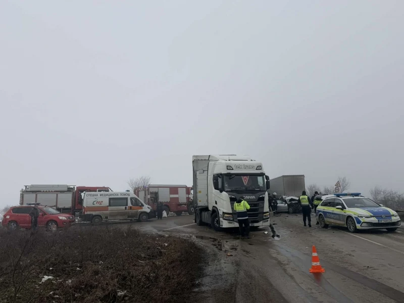 На място работят екипи на полицията, пожарната и Спешна помощ. Очаква се огледите и разчистването на пътя да продължат няколко часа, което ще наложи използването на обходни маршрути за транзитния трафик.
