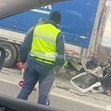 Докато той набира скорост в задната му част се блъска микробус с полска регистрация.