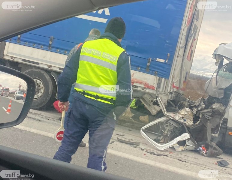 Извършва се оглед от дежурна група на РУ-Пазарджик. Движението по автомагистралата се извършва нормално в скоростната лента.