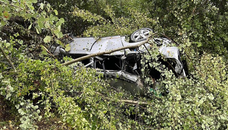 Лек автомобил "Мерцедес" с двама младежи в него блъска с висока скорост отзад "Тойота", управлявана от жена. След удара немската марка кола, управлявана от 20-годишен водач, излита през мантинелата и пада в дерето на река Върбица.