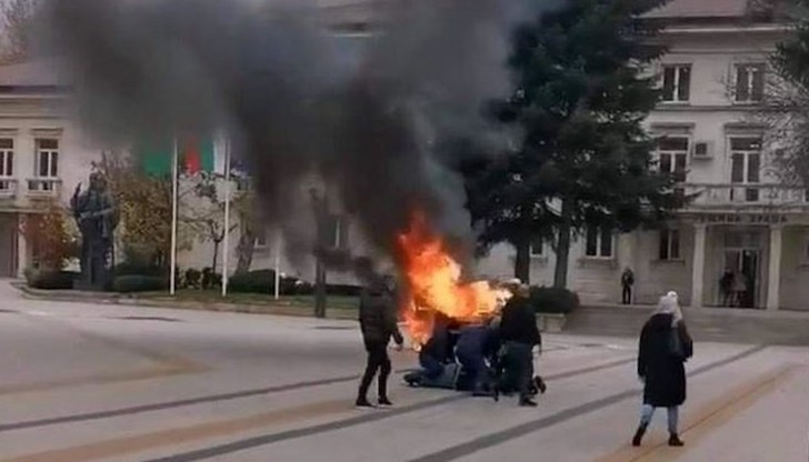 Мъж е залял с бензин и е запалил автомобила си пред сградата на община Враца по неизвестни причини минути преди 12:00 часа днес. Няма пострадали, а мъжът, чиято самоличност засега неизвестна, е задържан от полицията.