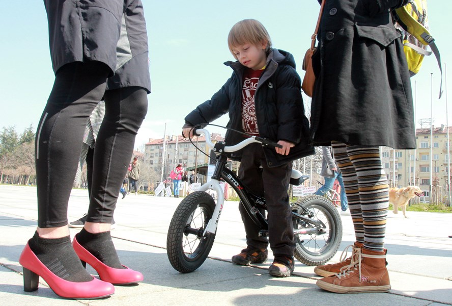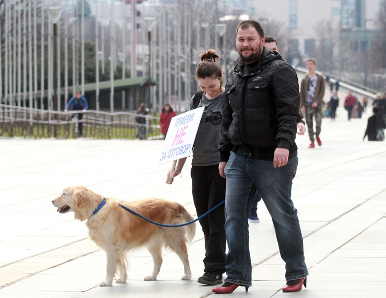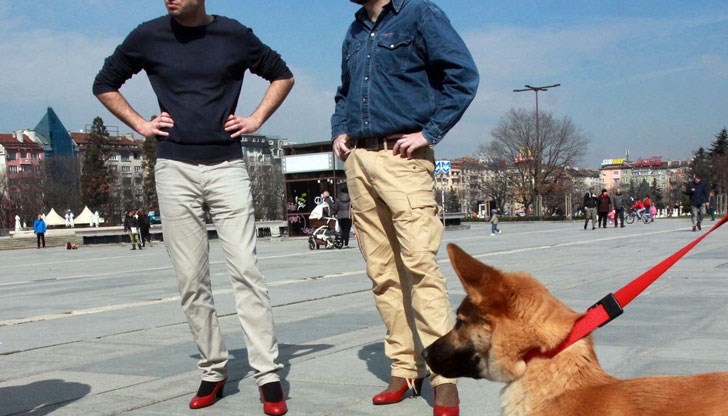 Мъже се качиха на токчета пред НДК днес, за да привлекат вниманието на обществото върху насилието над жени.
