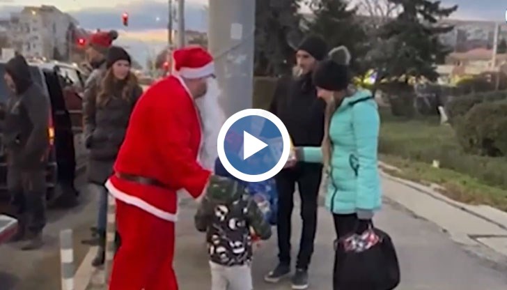 Мъже в костюми на Дядо Коледа раздават подаръци по улиците на София