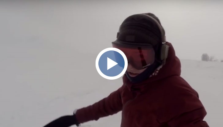 Сноубордитска, която се спуска и се снима с пръчка за селфи, и бягаща зад нея мечка се превърнаха в сензация в социалните мрежи.