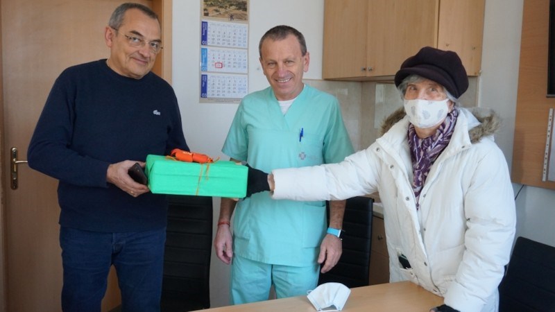 В знак на своята благодарност директорът на ДСХ „Възраждане“ Ани Венкова, трудотерапевтът Елица Досева и двама от потребителите на Дома поднесоха лично мартеничките на медицинските екипи от русенските болнични заведения.