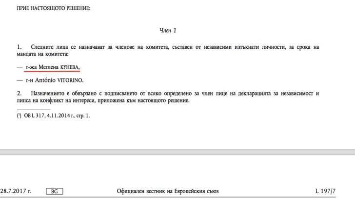 Информация от партията на Кунева – “Движение България на гражданите” за новия пост на лидера й, обаче, досега не е съобщавана. Кунева е предложена от Европейската комисия за член на Комитет, който се занимава със статута и финансирането на европейските политически партии. Заедно с нея, председателят на ЕК Жан Клод Юнкер е номинирал и португалския политик и бивш еврокомисар Антонио Виторино.