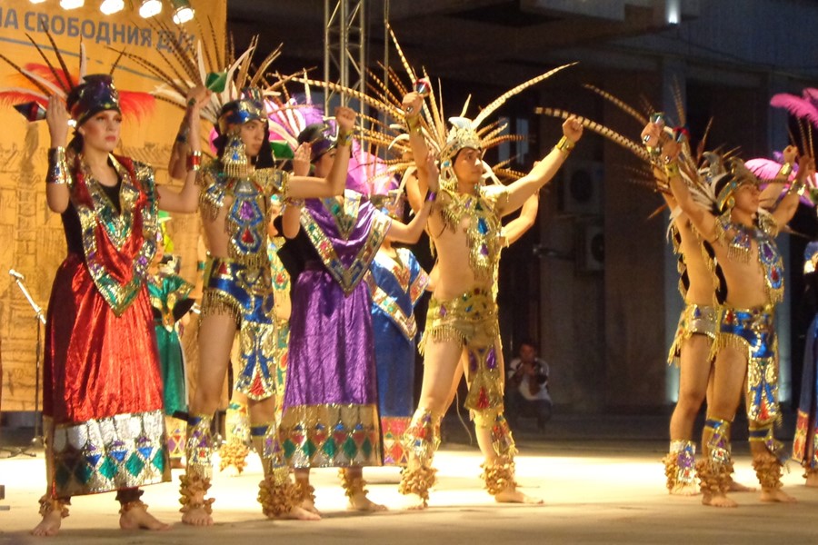 На сцената пред Общината те изненадаха зрителите, преобразени с атрактивни костюми на ацтеки. Традиционни мексикански танци, латино ритми, изпълнени на живо от оркестър мариачи бяха само част от завладяващата атмосфера на представлението. С танци и музика, балет „Куаитл” показа различни обичаи от мексиканската култура. Танцьорите разиграха и сцена с традиционни хладни оръжия.