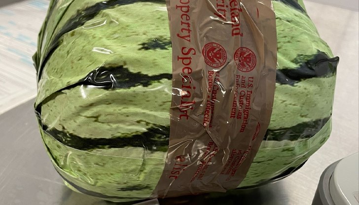 Контрабандисти са се опитали да пренесат метамфетамин на стойност 5 милиона долара, замаскиран като дини, през границата от Мексико към САЩ. Наркотикът, в количество над 2 тона, е бил грижливо увит в хартиени опаковки, боядисани така, че да наподобяват сочния плод, и е бил скрит сред друг товар в камион.