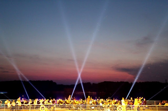 Прозвучаха характерни ритми и мелодии за всяка дунавска държава в класически и във фолклорен вариант, като музикантите бяха разположени на един от най-красивите круизни кораби „Вивалди”, а публиката ги наблюдаваше от брега. По време н а атрактивния концерт, стотиците присъстващи се насладиха на визуални ефекти – водна стена с 3D мапинг прожекции на танцуващи фигури с музикален съпровод, лазерни и светлинни ефекти над реката.