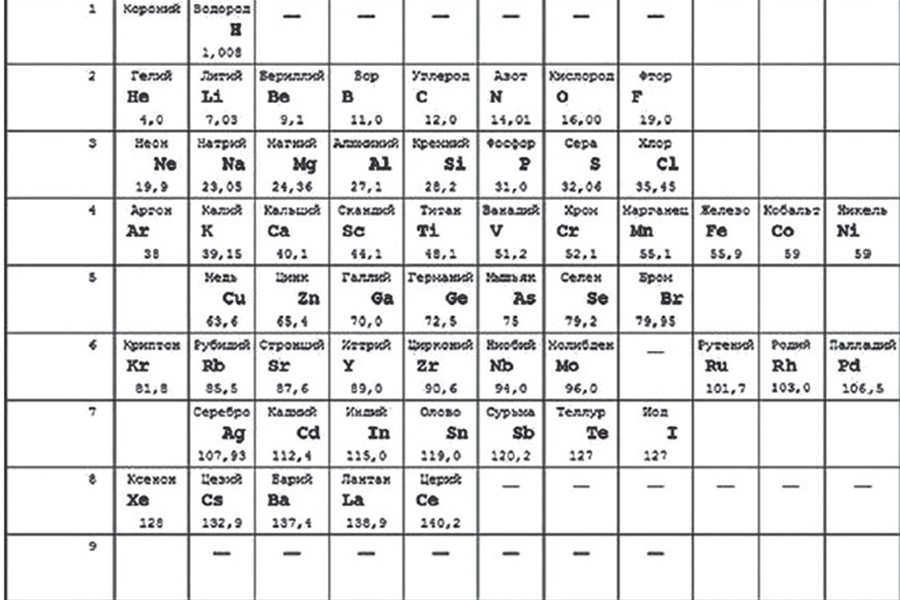 наречен „ефир“. Той е най-малката съставна част на всички други елементи, по-малък от молекулите, „първотухличката“, от която произлизат атомите. Оригинала на периодичната система руският учен публикува през 1905 г. в учебника „Основи на химията“. Там в нулева група наред с познатите ни инертни газове хелий, неон, криптон и ксенон Менделеев поставя и ефир. Нарича го „нютоний“ в чест на великия Исак Нютон. Точно той твърдял: „Цялото пространство на Вселената се състои от неуловим газ, без който е невъзможно съществуването на каквото и да е.“ Менделеев също смята, че ефирът е свързващото химията и физиката звено и основен градивен елемент на всемира. В края на ХIХ век руснакът е един от последните световноизвестни учени, отстояващи идеята, че нютоният (ефир, етер) е субстанцията, от която се гради Вселената, и в нея е ключът към разгадаването й. След преждевременната му смърт Периодичният закон бива умишлено „редактиран“ от световната академична наука. Премахването на ефира налага и промяната, при която инертните газове се обединяват с елементите от осмата група и таблицата придобива вида, в който се изучава сега. Заличаването на нютоний дава възможност на Айнщайн, заимствайки идеите на Анри Пуанкаре, да създаде и наложи специалната си Теория на относителността. Физиците се отказват от понятието „ефир“ и признават електромагнитното поле като самодостатъчен обект, който не се нуждае от допълнителен носител.