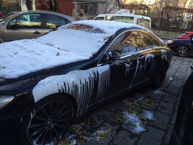 Мерцедес на сирийския студент осъмна залят с блажна боя