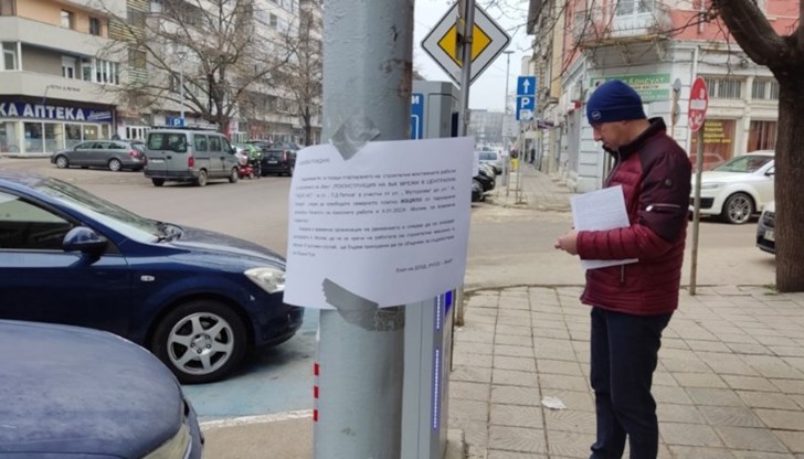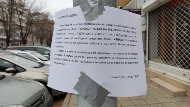 От изпълнителите на строително-монтажните дейности са разлепили предупредителни надписи, с които молят автомобилите да бъдат преместени, но за момента паркоместата са изцяло заети, съобщи Русе Медиа.