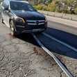 Стефан Маринов публикува и снимки от мястото на инцидента. На тях се вижда дълга, усукана метална лайсна, която е пробила предната броня на джипа и се е забила дълбоко под автомобила.