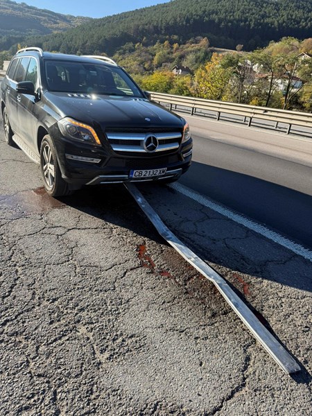 Шофьор се размина на косъм от тежък инцидент по автомагистрала "Хемус", след като огромен метален елемент се вряза в джипа му по време на движение. За случката, станала вчера (20 октомври), разказа самият потърпевш, Стефан Маринов, в публикация в социалната мрежа Facebook.