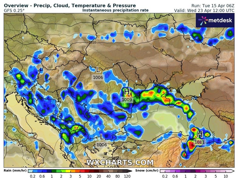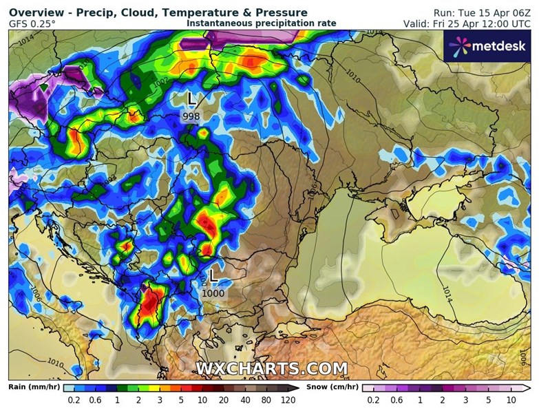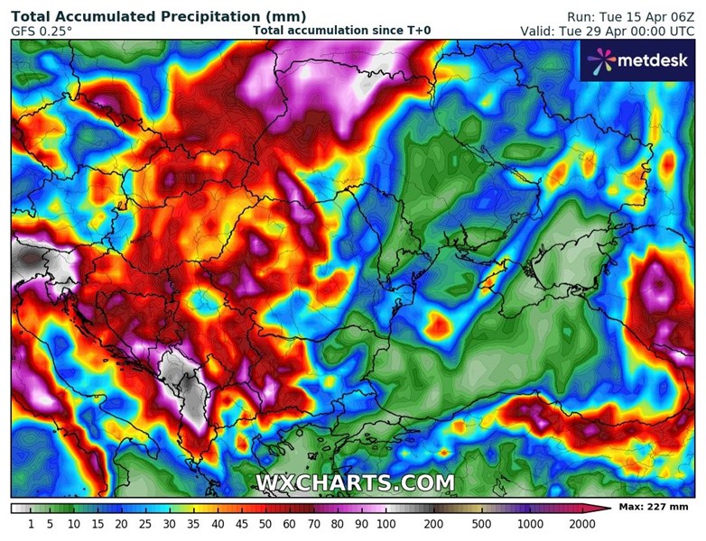 България ще бъде връхлетяна от значителни валежи около и след Великден, които могат да доведат до локални наводнения и активиране на свлачища в планинските райони. Това съобщават от "Meteo Balkans" в своя прогноза от 15 април, като предупреждават, че подобни метеорологични условия почти всяка година са предизвиквали наводнения в много български градове.