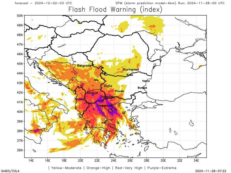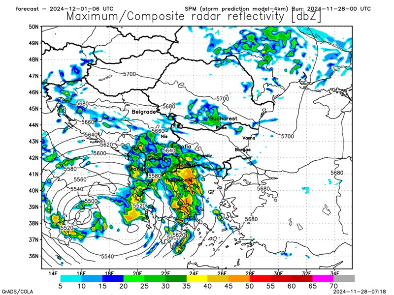 В периода от 29 ноември до 02 декември 2024 година, циклонът ще влияе върху времето над Западните Балкани, Южна Италия и Йонийско море. Валежните количества в Централна Гърция се очаква да достигнат 200-250 литра на квадратен метър. Поради спецификата на релефа в Централна Гърция и Южна България, на места валежите могат да надхвърлят 250 литра на квадратен метър.