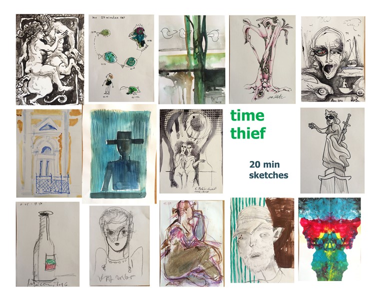 Общуването на българските участници с гост художниците от чужбина бе стимулирано от артистичното състезание със заглавие „Крадец на време“. Всички участници трябваше да работят върху еднакъв формат картон 20/30 см., като импровизацията им бе ограничена във времето - до 20 мин. Символът за откраднатото време или за материализацията илюстрира същността на творческия процес. Художникът, подобно алхимиците, контролира процеса на трансформация дух - материя.