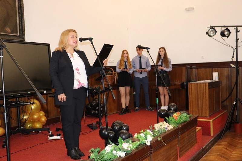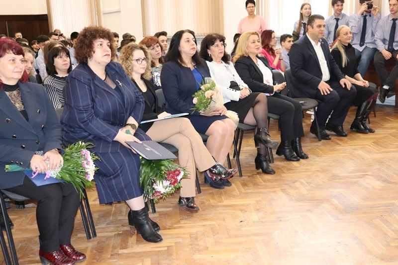 Заместник-ректорът на Русенския университет сподели, че историята на гимназията ни задължава да крачим смело и гордо с вдигната глава. „Не се ограничавайте в мечтите си“, каза доц. Атанасова на учениците. Доцент Иванова пък им пожела здраве и много успехи.