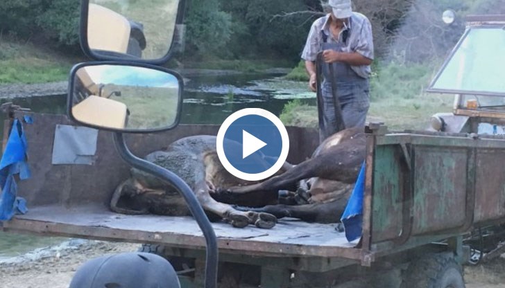 „Не може едно животно 400 – 600 кг да падне за три минути в река Тунджа, това явно е много силна отрова“, коментира фермерът Митко Желев.