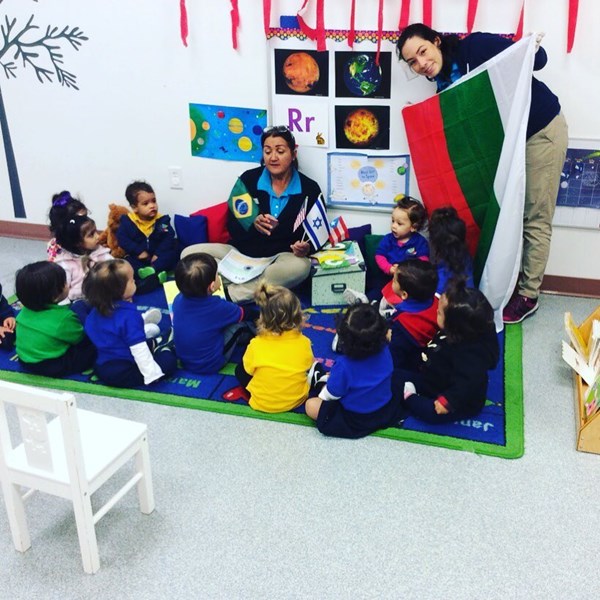За празничното мероприятие Мика съобщи преди три дни, а на снимката оттогава ясно се виждат учителките, заобиколени в милата компания на децата, сред които е и Миа. Всички са седнали на пода, а изправената дама демонстрира знамената на съответните държави, от които произлиза всяко едно от мъничетата.