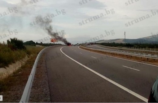 Това е вторият случай с изгорял микробус само за 48 часа на международния път, преди ден изгоря микробус край Благоевград.