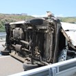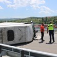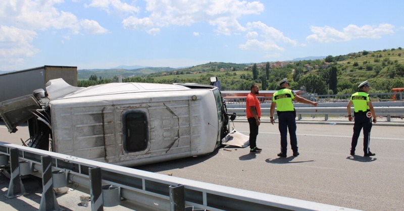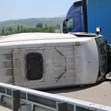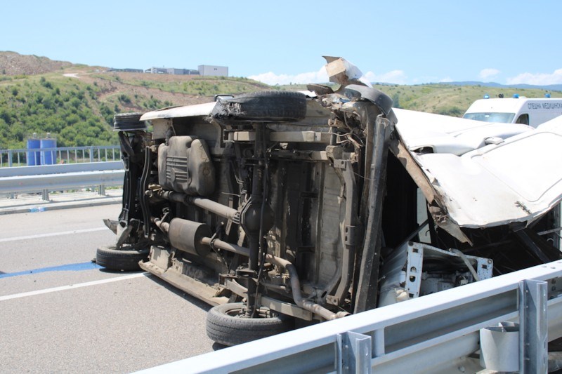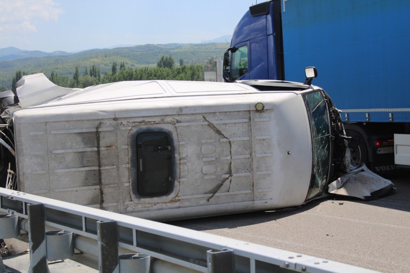 Микробус се удари в мантинелата и се преобърна странично на магистрала "Струма" край Благоевград. Двама души са с охлузвания и откарани за преглед в болница.