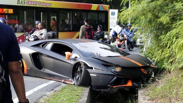 Някой не е успял да се справи с бика и така историята на един доста красив Aventador е завършила със сериозен удар.