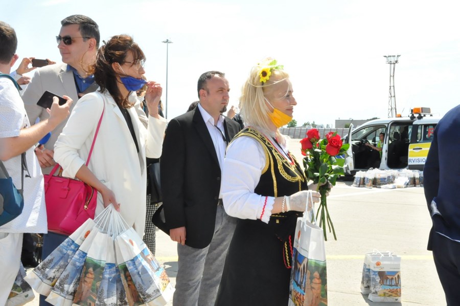 Те бяха посрещнати от министъра на туризма Николина Ангелкова, кмета на Бургас Димитър Николов, директора на Летище Бургас Георги Чипилски и туроператорски компании.