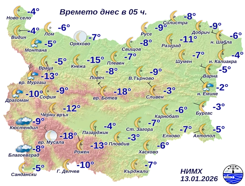 Екстремно ниски температури сковаха Северна България тази сутрин, като термометрите в Кнежа отчетоха рекордните за тази зима минус 15 градуса в 05:00 часа. Данните, потвърдени от синоптичните модели, маркират пика на настоящата ледена вълна, но истинската опасност тепърва предстои с рязката промяна на времето в следващите часове.