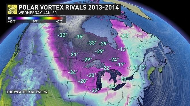 Това е явление, което може да се случи веднъж на поколение и носи сериозна заплаха за здравето и живота на много хора. Метеорологът Джим Хайес предупреди, че при толкова силен студ първите признаци на измръзване може да се появят след само 10 минути, както и че няма да се затопли в продължение на няколко дни.