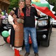 Момичето събра погледите с облеклото си. Тя не спря да развява родното знаме и да играе хора през целия ден, а от модерния й джип звучеше само народна музика.