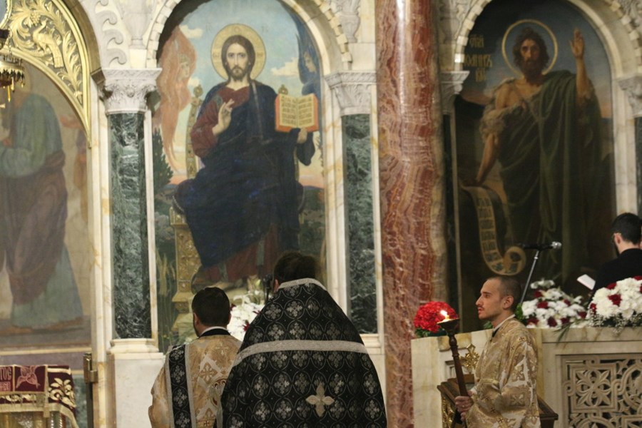 На Велика събота в патриаршеската катедрала „Свети Александър Невски“ беше отслужена архиерейска вечерня със Света Василиева литургия, оглавена от мелнишкия епископ Герасим.