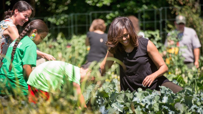 Всяка година десетки деца очакват с нетърпение есента, за да могат да получат възможността да отидат на гости на семейство Обама и да им помогнат да извадят засадените през пролетта зеленчуци.