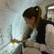 Част от релефите по стените и тавана са ерозирали, но други са се съхранили изненадващо добре. Реставраторите премахват дебелия пласт от калций първо на ръка, а после с фини бормашини.