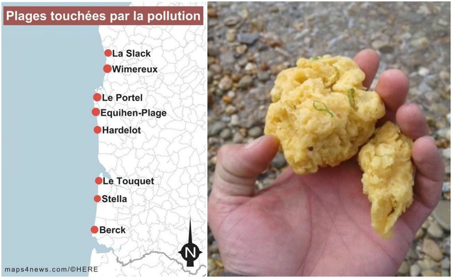 "Изглежда, че са някакъв петролен продукт", заяви пред френския телевизионен канал BFMTV Джонатан Еникар, президент на асоциацията Sea-Mer. "Може да идват от фабрика за полиуретанови изделия, които обикновено се използва в строителството и миризмата им много наподобява тази на парафина", допълва той.